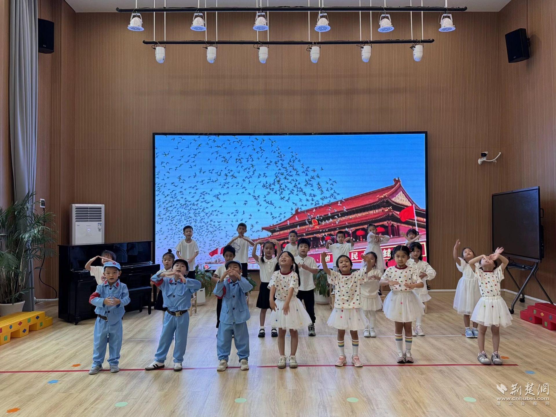 汇演环节中,孩子们用歌声、朗诵与情景剧演绎家国情怀。中班幼儿带来了《中秋节》《月儿圆圆》等节目,孩子们以稚嫩动作传递团圆温情;集体朗诵《多彩的中国》《我爱祖国》时,纯真的表达诉说着对祖国的热爱,引发现场共鸣;大班幼儿则将红色情景剧《穿越时空的对话》搬上舞台,孩子们在历史与现实的交织中感悟“幸福来之不易”,掌声与喝彩声此起彼伏。